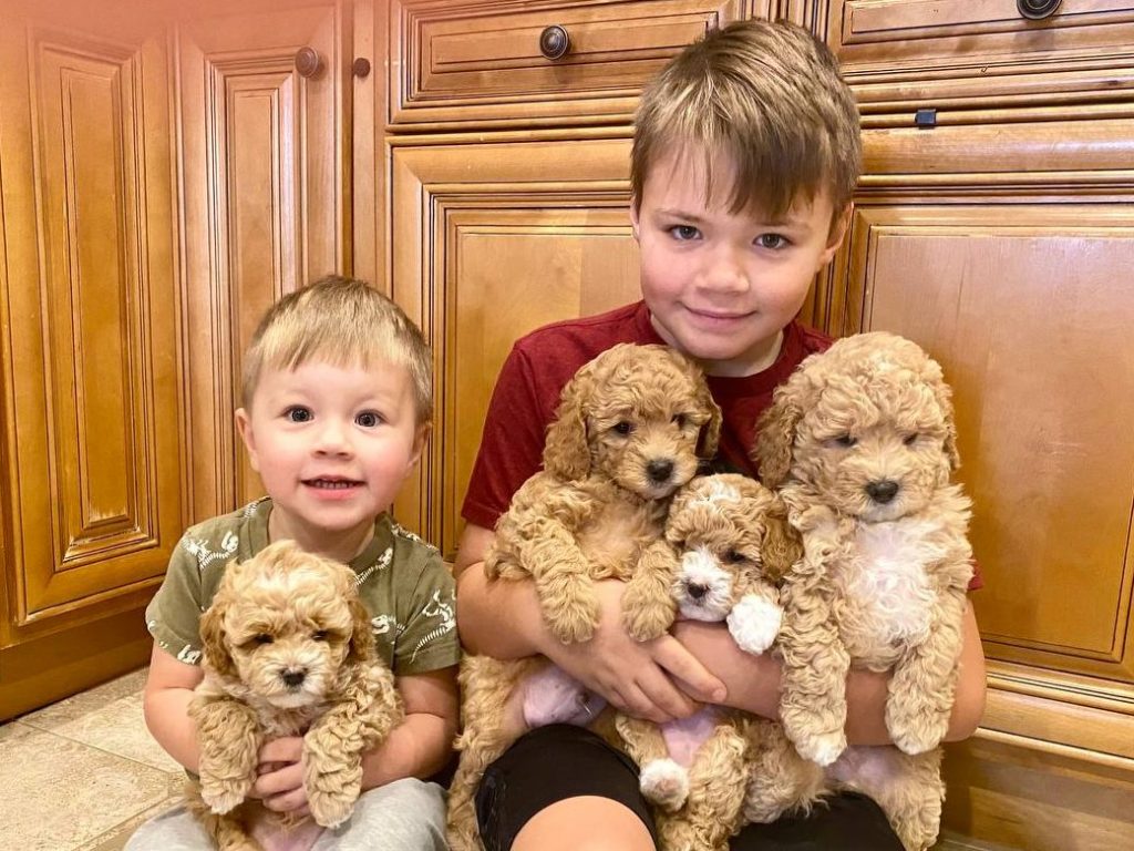 We love and raise our puppies out of our home in Boiling Springs SC. Both parents are genetically tested and approved by a Veterinarian for breeding. We make sure your puppies are raised in a well socialized, happy, and healthy environment. Our F1B and F1BB range from 15 to 25 pounds. Before your puppies go home we introduce them to crate training, as well as a form of potty training to help transition them for “big puppy” potty training.